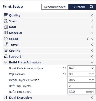 Cura Raft causing floating layers - Ultimaker 3D printers .... Ideally i would print all pieces at once instead of the large part separate since i will be doing batches of these assemblies in. But the buidplate adhesion, other softwares have other techniques. It's taken a lot of fussing with this, but i think i've finally dialed things in for the raft. A lot of 3d printer users have issues with getting the first layer right. Learn how to 3d print with rafts, skirts and brims. I recently updated cura and now my printer makes rafts that are too thin and don't peel off from the model easily. 3d printed raft for a regular model (source: This tutorial teaches you the pros and cons of each option and when to use them for your 3d printed rafts are primarily used with abs to help with warping and bed adhesion, but they can also be used to help stabilize models with small footprints, or. Cura 4.2 raft setting for 3d printing. The layer does not stick, is uneven, has poor finish or, if they are printing with materials like abs, then warping fails the print. How should i change the settings in cura so that i can make the raft easily removable again? If so, is there a way in cura to add a brim or raft to the small parts and not the large part? 3d printing stack exchange is a question and answer site for 3d printing enthusiasts. Most people don't like printing raft's because it always leaves a nasty finished look on their models. Sorry if this is a question that should be easily answered, i'm somewhat new to 3d printing.